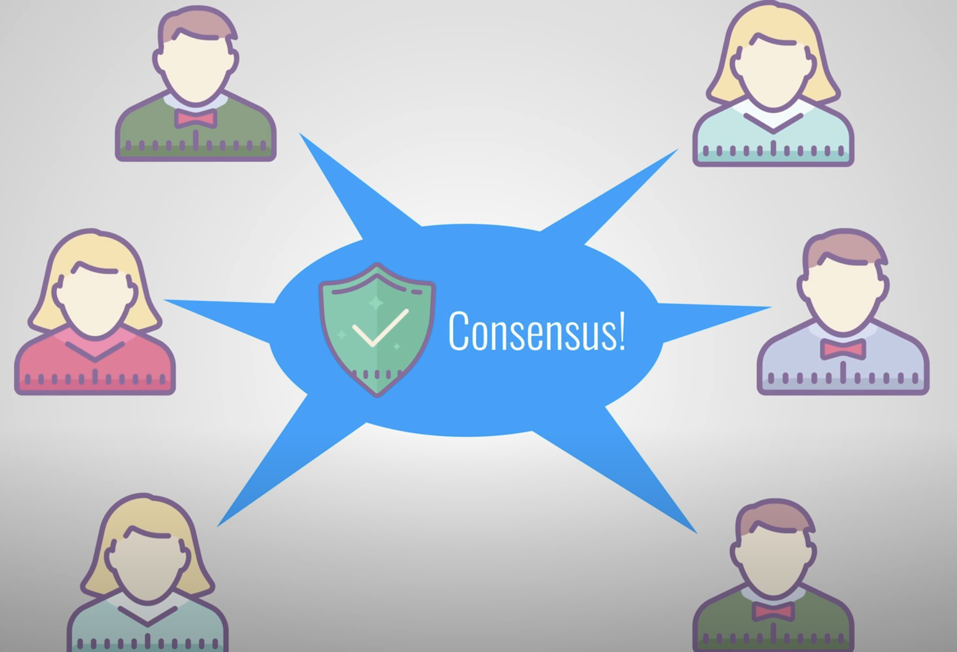 네트워크 상의 모든 노드가 같이 합의에 도달하게 됩니다. 모든 노드들은 각 블록의 유효 여부를 결정합니다. 한 노드에 변조된 블록이 있더라도 그 블록은  네트워크의 다른 노드들에 의해서 거부됩니다. 그래서 한 블록체인을 성공적으로 조작하기 위해서는  체인에 있는 모든 블록을 동시에 조작해야 할 뿐만 아니라 각각의 블록에 대한 작업 증명을 재실행하여서   P2P 네트워크상의 50% 보다 많은 노드로부터 동의를 받아야 합니다. 그런 다음에야 그 변조된 블록이  모도는 사람에 의해 받아들여지게 됩니다. 하지만, 그것은 거의 불가능합니다! 블록체인 은 지속적으로 진화하고 있습니다.